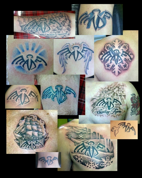 Don't Cry Because It's Over. Smile Because It Happenedfrom the artist who designed the Logo and other artwork for Mady's Angels:Ainslie HeilichFollowers of me on Facebook have surely noticed the tattoos bearing the same symbol over the past several years. People keep asking me what is up with those tattoos and what does that symbol mean? It is a stylized design of an angel with wings and halo. But, it is also letters that spell out MADY.