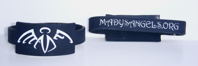 Debossed 1/2" debossed silicone wristband. Front large logo/ back madysangels.org black/white ... $2.00